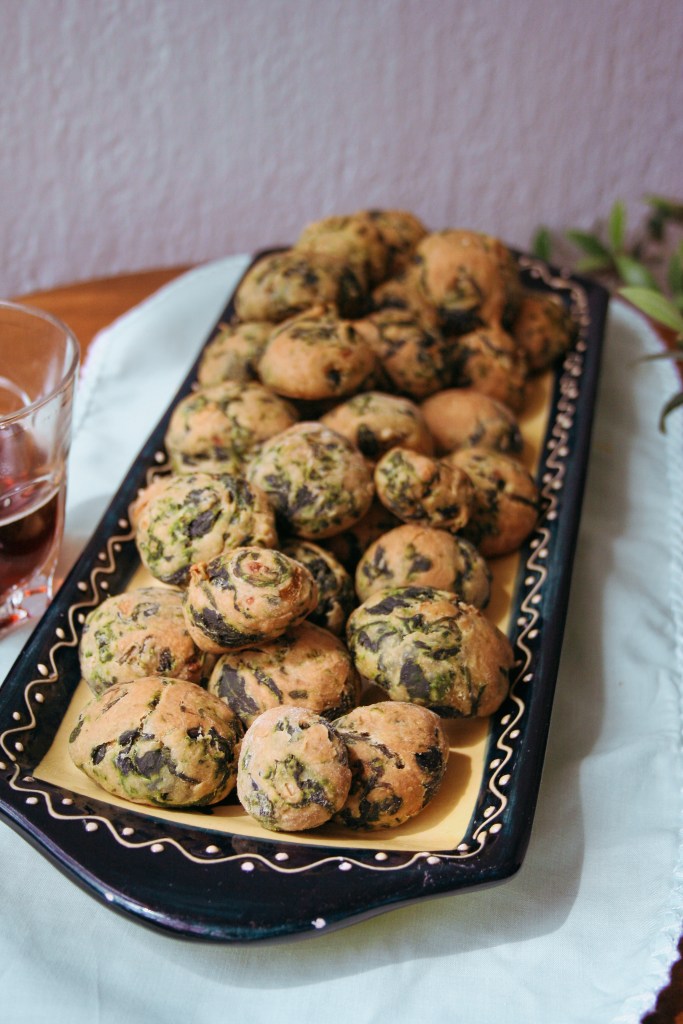En la versión más sencilla, estos buñuelos incorporan únicamente espinacas y especias a la masa, aunque en este caso les he añadido también cebolla. En ocasiones se rellenan incluso de queso blanco.