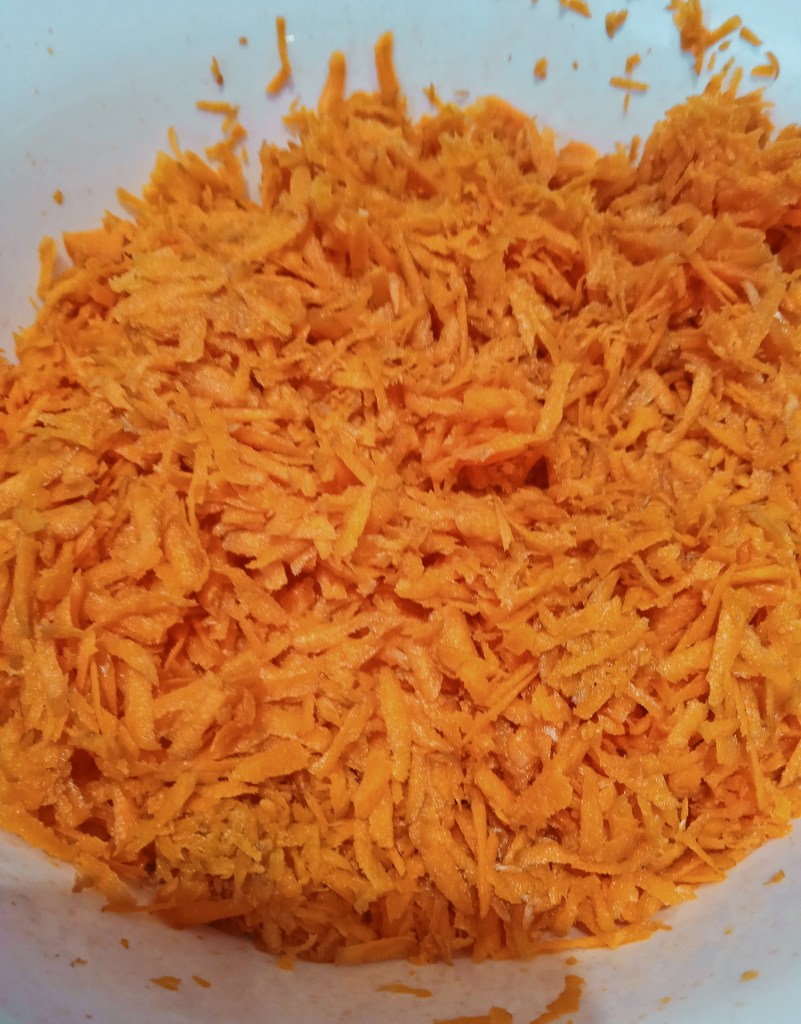 - Lavamos bien las zanahorias y las rallamos.