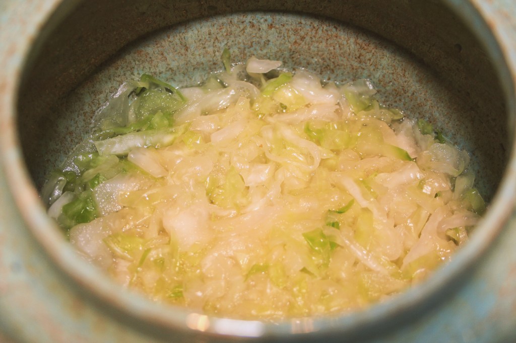 - Dejamos reposar al menos media hora, para que la col empiece a soltar el jugo.