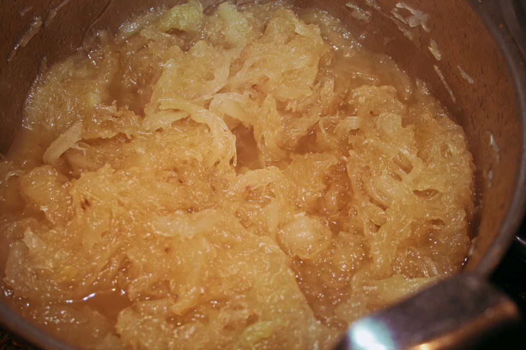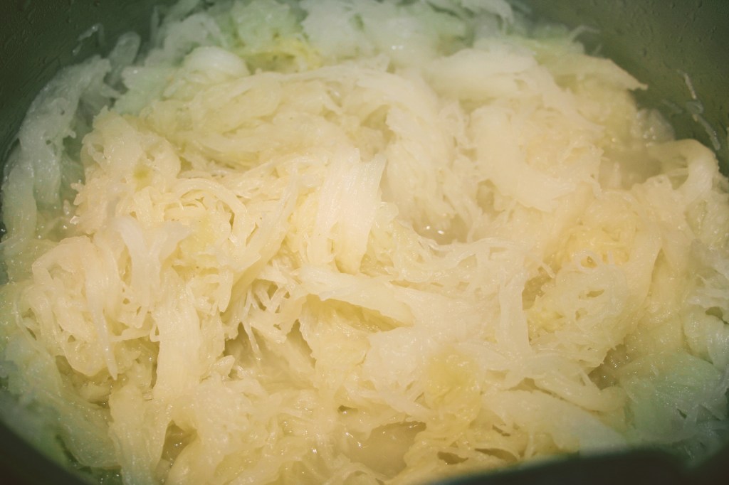 - Cocinamos durante una hora aproximadamente, hasta que espese y el cabello de ángel quede dorado.