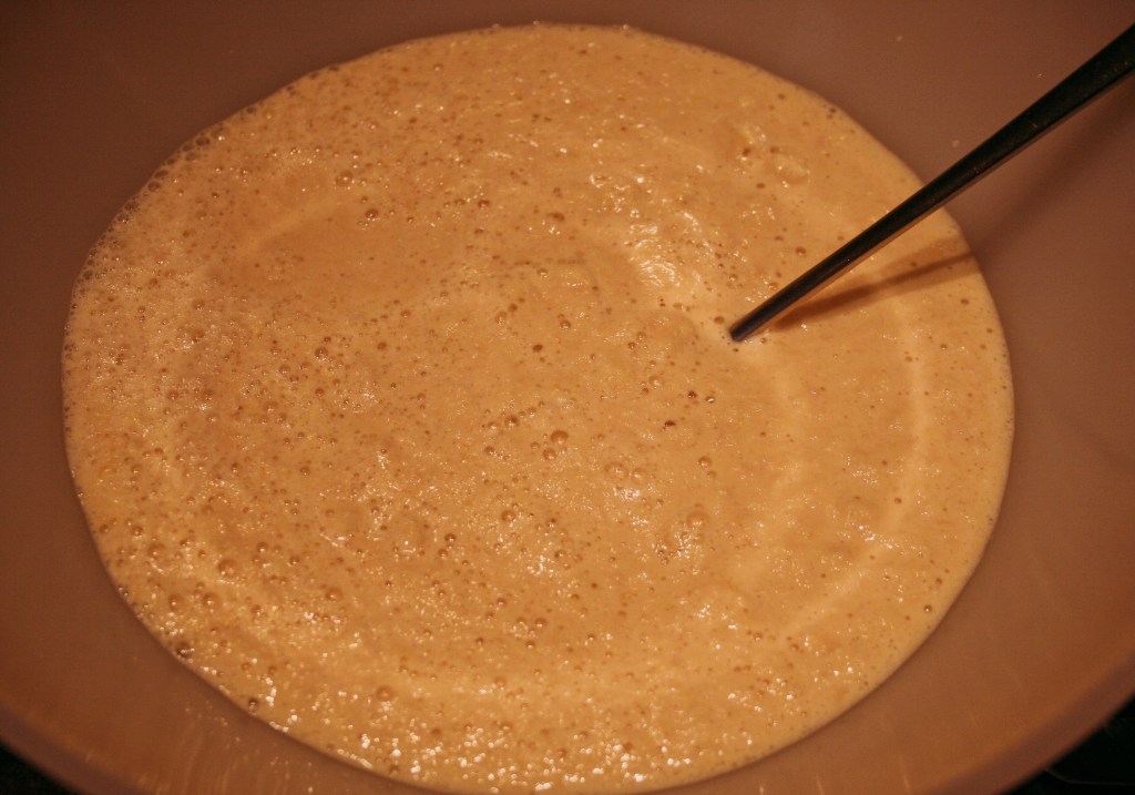- Colamos la mezcla con una gasa fina, extrayendo la «leche» de garbanzos.