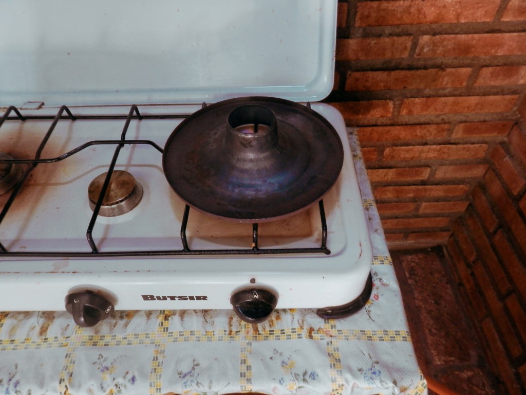 El «horno» tiene una base, que se coloca directamente sobre la cocina de gas, y que se caliente a altas temperaturas. Esta base será la que proporcione el calor al resto del «horno».