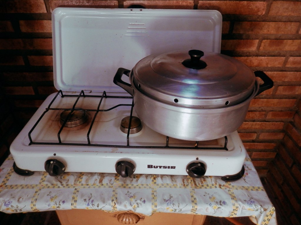 Por otra parte, la receta que verás a continuación es para un horno eléctrico normal, pero quería incluir un par de fotos de este «horno para cocina de gas», que utilicé para preparar el bizcocho esta vez, y que me encanta.