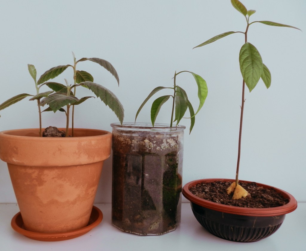 A continuación voy a explicarte cómo he germinado los tres arbolitos que aparecen en la foto, unos nísperos, un mango y un aguacate. Pero ¡no te limites a estos! Los métodos que he utilizado son aplicables a cualquier otra semilla, así que ya sabes ¡atrévete con todo!