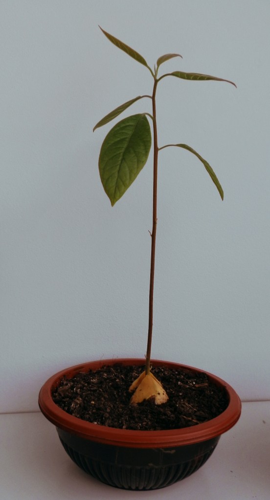 Si el agua se empieza a enturbiar, cámbiala. Al cabo de tres semanas, la semilla comenzará a abrirse, y verás que la raíz ha empezado a desarrollarse por la parte inferior. Es el momento de enterrarla ligeramente en una maceta y ver como poco a poco empieza a salir el tronco y sus primeras hojitas.